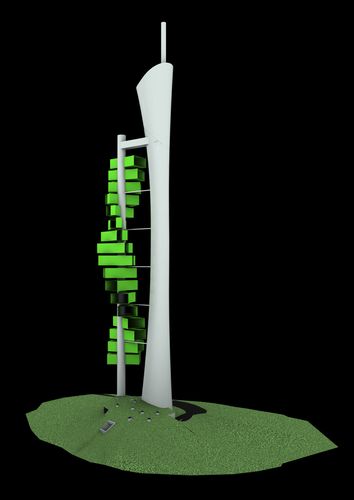 Návrh polyfunkční komunikační věže představuje jak svým tvaroslovím, architektonickým výrazem, designem i přínosným technickým řešením průmyslovou stavbu, která je ohleduplně umístěna v krajině. Autor svým přístupem projevuje velkou snahu minimalizovat dopad provozu objektu na jeho okolí a většinu provozních i obslužných funkcí umisťuje do podzemí věže, která je v parteru nasypána zatravněným pokryvem. Oceňuje se výrazná šetrnosti k okolí, kdy je vysílač při plném zachování technických funkcí k dispozici široké veřejnosti jako cíl výletů a procházek (restaurace, funkce rozhledny). Dále je hodnoceno pozitivně technické řešení propojení vysílače s bloky otočných větrných elektráren, zásobující vysílač ekologicky čistou energií.