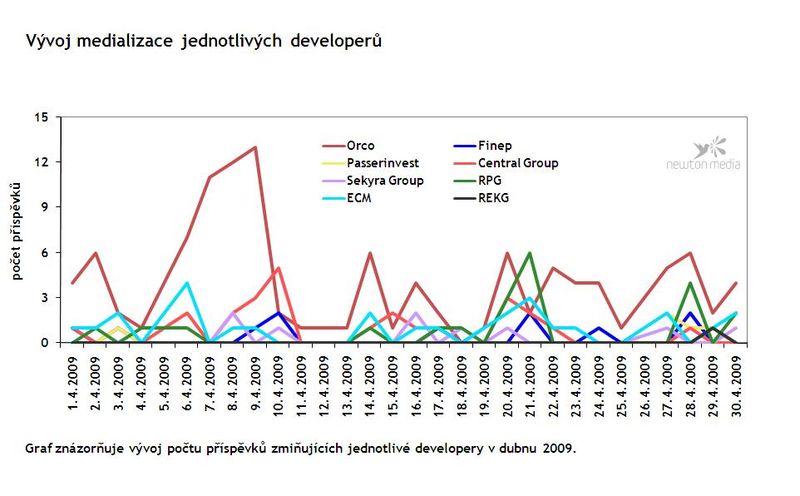 Čtenář, který si na základě četby denního tisku chce udělat obrázek o tom, jak se budou vyvíjet ceny bytů, v dubnu zaregistroval řadu různých, nezřídka i zcela protichůdných tvrzení. Byly mu předloženy snad všechny myslitelné scénáře: ceny budou stagnovat; byty zlevní; byty už zlevnily. Ojediněle zaznívaly i hlasy, že ceny bytů půjdou nahoru. Ukazuje to analýza společnosti Newton Media, která v měsíci dubnu zkoumala „přítomnost“ developerů v celostátních denících, rozhlasovém a televizním zpravodajství, společenských a vybraných ekonomických (E15, Euro, Ekonom, Profit) časopisech.