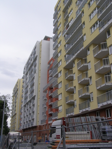 vychádza z doplnenia už existujúcich bytových domov na protiľahlej strane