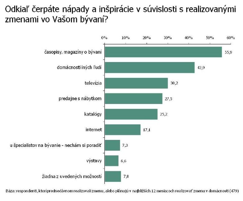 Že takéto tvrdenia nie sú postavené na vode, potvrdzujú aj výsledky májového omnibusového prieskumu poradenskej spoločnosti GfK Slovakia, ktorý sa okrem iného venoval problematike bývania. Podľa nich takmer polovica ľudí na Slovensku plánuje v najbližších 12 mesiacoch investovať prostriedky nie do kúpy nového, ale práve do rekonštrukcie či vynovenia si svojho doterajšieho bývania. Z odpovedí respondentov vyplýva, že vo väčšine má ísť o vymaľovanie interiéru či exteriéru bytu resp. domu (14 %), rozličné stavebné úpravy (10 %), modernizáciu (10 %), celkové zútulnenie domácnosti (9 %), výmenu bytového textilu (8 %) a o kúpu nového nábytku (necelých 8 %). Skoro každý piaty respondent zároveň prezradil, že podobné aktivity už vo svojej domácnosti nedávno vyvíjal.