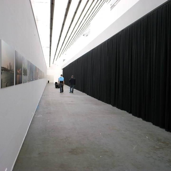 Koncepcia výstavy a spoločná modernistická téma – megalitické „zošikmené“ tvary – sa tak ľahko implantujú do zošikmeného priestoru, až vytvárajú maximálnu symbiózu: akoby bol tento navrhnutý exkluzívne pre výstavu a naopak. Pozdĺžny priestor premostenia je delený na svetlú a tmavú časť, čím provokujú už otrepanú otázku galérií: „biela kocka“ alebo „čierna krabica“? Tá svetlá (pod denným svetlom) ukazuje 50 posterov s projektmi, tá tmavá – intímna – ponúka sledovanie videoprojekcií delených na tri časti: Programuj, Parkovanie! a Remix.