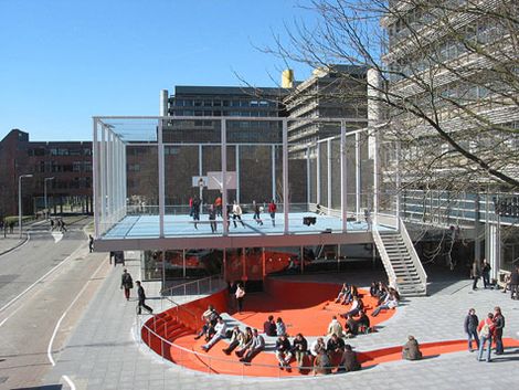 Spôsob organizácie a navrhovania objektov v ateliéri NL Architects je založený na vytváraní vrstiev – akomsi vrstvení funkcií. Akoby jedna funkcia „skrývala“ druhú – univerzitný bar je zastrešený basketbalovým ihriskom a preťatý skejtovou U-rampou. Výmenníková stanica je vo vnútri čiernej sochy, s diagonálne umiestnenou dierou, lezeckou stenou a jediným oknom slúžiacim ako basketbalový kôš. Alebo záhrada obalená vilou chrániacou jej primeranú klímu pred tuhou zimou…