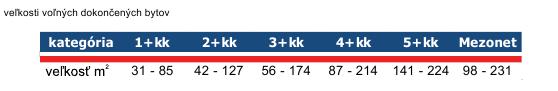 Tabuľka č. 1 – Výmery voľných dokončených bytov