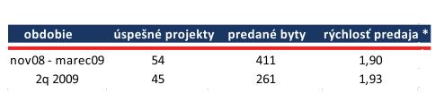 *) rýchlosť predaja = počet predaných bytov mesačne na 1 úspešný projekt