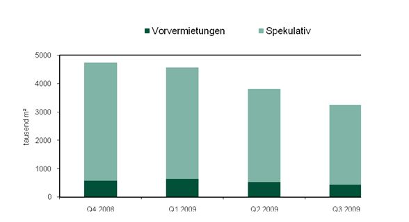 Vlajkovými projektmi 3. kvartálu boli Central Five (8 110 m2, Vinton Development), Omnipolis (10 100 m2, Omnia Real) a Tatra City (11 034 m2, Tatra Residence). Medziročný pokles dopytu o 29,4 % je neodvrátiteľným symptómom krízy. V rámci predbežnej obsadenosti prebehlo 30 transakcií s priemernou plochou 500 m2. Do ich približne rovnakého počtu však vnieslo pochybnosti zmenšenie priemernej veľkosti obsadzovanej plochy o 3,5 %. Podstatnou zmenou oproti 2. kvartálu je tiež výrazné zníženie záujmu o formu predprenájmu z 34 % na púhych 5,5 %.