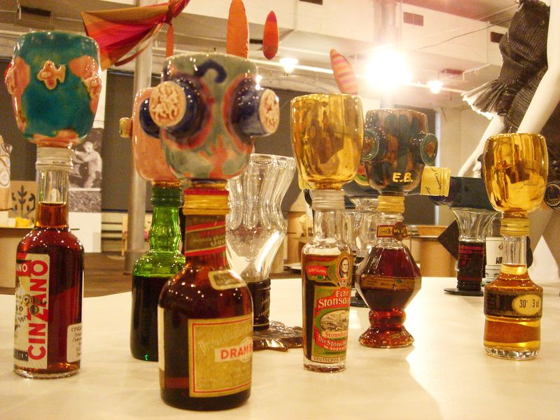 Odlišným princípom, tiež však zo života, sa inšpirovala aj Edita Balážová pri návrhu svojej kolekcie pohárov alebo klasických štamperlíkov príznačne nazvanej Alkoholu neholduj. Alkoholové fľaše tak primerane odrezané „pristáli“ na keramickom funduse. Alebo trónia ako keramické kalíšky na samotných miniatúrach „veľkých“ fliaš.