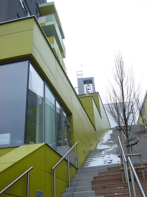 Možno to tak pôsobilo zo začiatku. Rakúsky developer Raiffeisen Evolution Project Develoment s.r.o. kúpou časti pozemku, ktorý mal byť pôvodne využitý ako priľahlý park k vyššie položenému kostolu, trocha zariskoval. Kreatívna skupina architektov z bratislavského ateliéru ITB (Tomáš Šebo, Igor Lichý a Martin Hraško v spolupráci so Soňou Dianovou, Emanuelom Zatlukajom, Norou Vranovou a Nasťou Janiovou) ho však nakoniec veľmi dômyselne a efektívne zastavala.