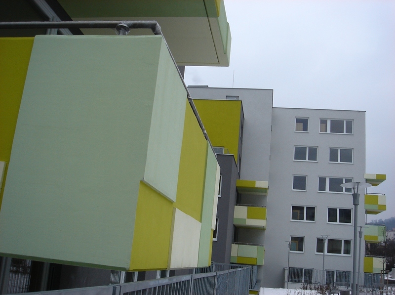 (s priestrannými terasami) a balkónové telesá s plastickou farebnou