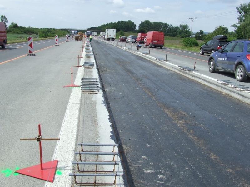 2, 3 – Výstavba šesťpruhového úseku diaľnice D1 z Bratislavy do Trnavy. Podmienkou rekonštrukcie stredného deliaceho pásu bolo, že doprava musí byť vedená sústavne v štyroch pruhoch.