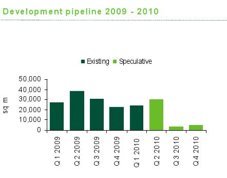Pokiaľ ide o avizovanú výstavbu, z prieskumu CBRE výhľadovo vyplýva, že okrem už odovzdaných 24-tisíc m2 v komplexe Eurovea sa má v roku 2010 dokončiť ďalších 40-tisíc m2, dokopy teda približne 64 000 m2 nových kancelárskych plôch. Druhý kvartál má byť totiž v znamení rozšírenia ponuky o 25 000 m2 po kolaudácii projektu RiverPark spoločnosti J&T.