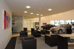 Průhonický autosalón má tvar elipsy s dvoma nadzemnými podlažiami. Jeho presklený parter signalizuje účel stavby rovnako ako mohutný totem s logom značky pred vchodom. Už vstupné priestory so zníženými podhľadmi a tmavším sfarbením však navodzujú intímnejšiu atmosféru umocnenú nápisom „Vítame vás!“. Vchod slúži ako recepcia, kde vás privíta usmievavá slečna recepčná, ktorá vás uvedie a ponúkne občerstvenie. Odtiaľ sa ďalej prechádza priamo do samotného show-roomu, kde rozumne dimenzovaná plocha ponúka miesto na prezentáciu šiestich modelov. Dôležitým miestom hlavného priestoru salónu je viditeľne umiestnený konfigurátor, kde predajca podľa zadania klienta s pomocou počítača „skladá“ finálnu podobu automobilu na veľkom LCD monitore.