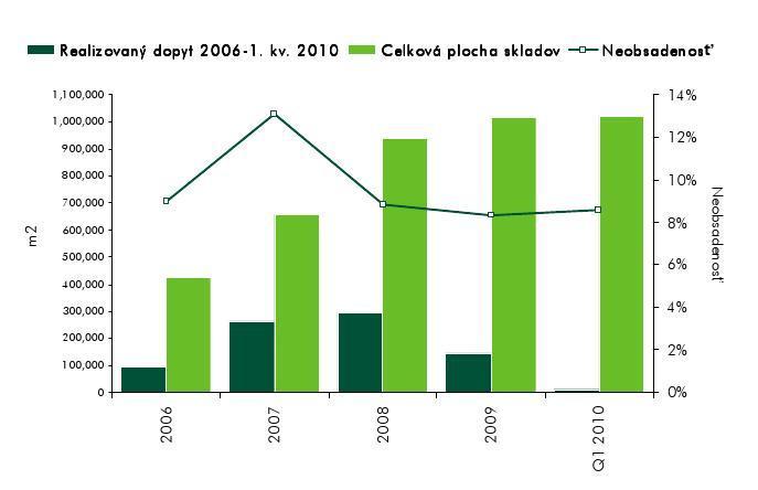 Graf 4 (CBRE) – Vývoj na trhu so skladmi od roku 2006 po súčasnosť