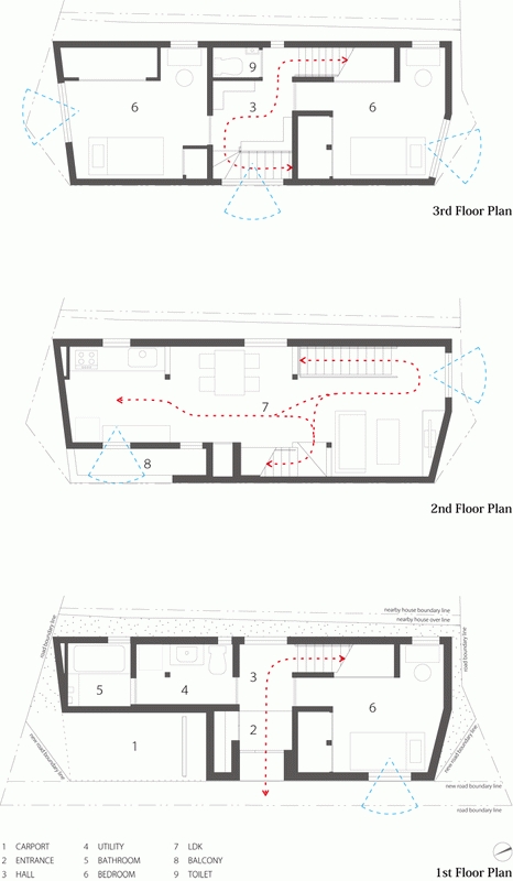 Dům Shimouma, první projekt japonského studia Kazuya Saito Architects, byl po čtyřměsíčním projektování a tříměsíční výstavbě dokončen na úzkém, něco přes 49 m² velkém pozemku v Tokiu. Dům s dřevěnou konstrukcí pro matku, syna a několik koček má tři podlaží a nabízí celkem 109 m² obytné plochy, kryté parkování a střešní terasu. V interiéru dominují přiznané dřevěné trámy, dřevěná schodiště a na míru vyrobený dřevěný nábytek.