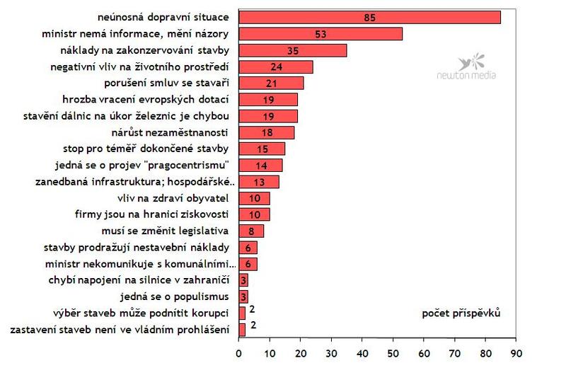 jednání ministra dopravy negativně. Nejvíce kritických ohlasů pocházelo