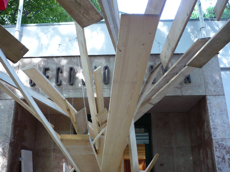 V pavilonu, o nějž se dělí Česká a Slovenská republika, byla letos expozice, kterou připravila Národní galerie v Praze. Z výběrového řízení v listopadu loňského roku vybrala projekt s názvem Přirozená architektura, který je dílem Martina Rajniše a jeho ateliéru e-MRAK a Ireny Fialové s Janou Tichou ze Zlatého řezu. Dřevěné hráně naplnily pavilon i prostor před ním s takovou poutavostí, že i dřevo z okolí se slétalo ke vstupním dveřím, aby se mohlo účastnit …