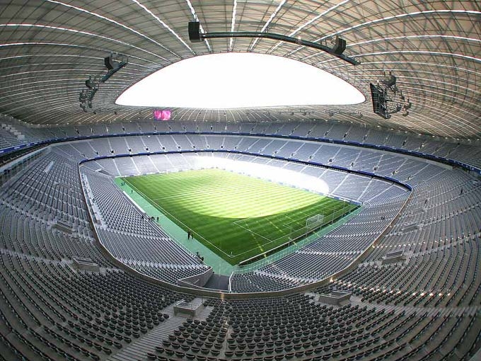 - Mníchov: ALLIANZ Aréna – pohľad do interiéru olympijského štadióna