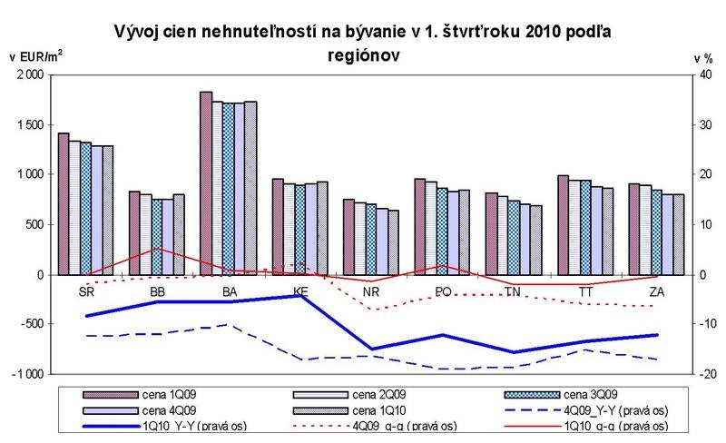 - Porovnania vývoja cien nehnuteľností v regiónoch za 1.štvrťrok 2010 (graf)