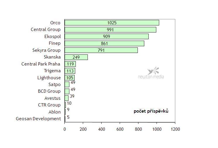 Značnou část publicity značky Orco ovšem tvořilo burzovní zpravodajství, které mapovalo pohyb akcií společnosti (57 % všech příspěvků). Z tohoto úhlu pohledu v pořadí druhá nejmedializovanější developerská firma, Central Group, se svými 991 příspěvky je vlastně vítězem pomyslného klání o developerskou mediální celebritu roku. Nepochybně i díky tomu, že Central Group plnila také stránky bulvárního tisku. Především díky vlastnictví soutěže Miss ČR – vděčným tématem se stal konkurenční boj mezi její prezidentkou Taťánou Kuchařovou a Michaelou Maláčovou, která organizuje Českou Miss. Média seriozněji zaměřená zase poměrně hodně rozebírala aféru údajných daňových úniků a policejní vyšetřování a razii v sídle společnosti, které nakonec vyústilo v zatčení výkonného ředitele Aleše Novotného.
