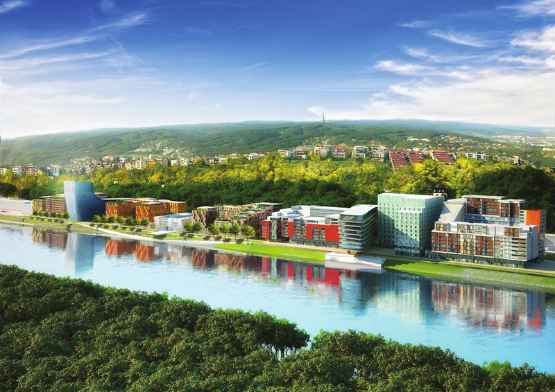 apartmánového domu River House a vertikálna administratíva na námestí.