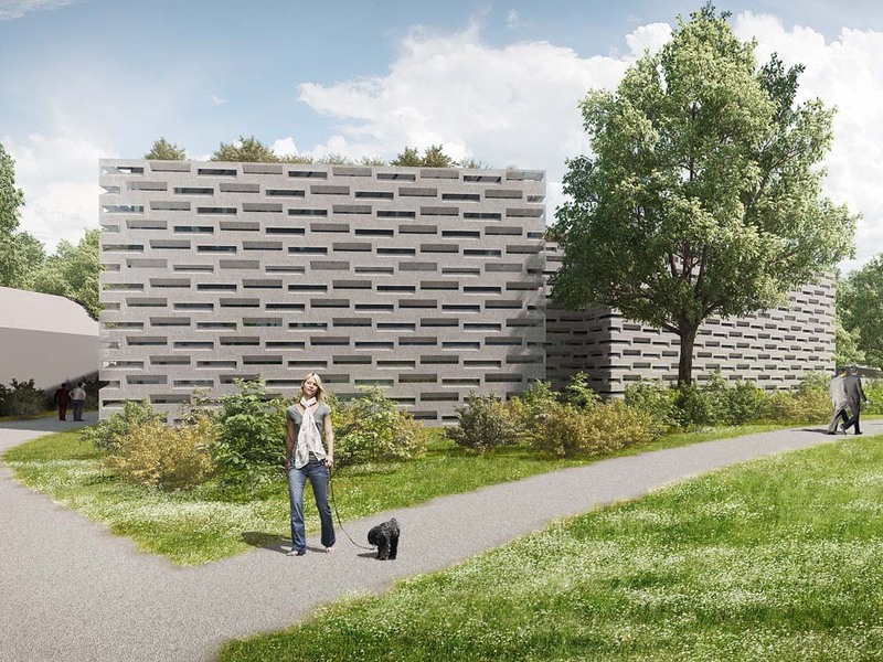 - Laserové centrum ELI Dolní Břežany – Soutěžní návrh. Administrativní budova s vnitřním otevřeným dvorem, která je mostem přes vodní plochu spojená s podzemní laboratoří.