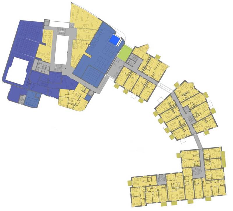„Vychádzame z predpokladu, že pokiaľ sú seniori schopní pohybu, trebárs aj asistovaného, dostanú sa do všetkých častí areálu. Preto je prízemie všetkých troch objektov prepojené krytými lávkami, ako ukazuje nasledujúci obrázok. Chceme im takisto zabezpečiť možnosť komunikácie pomocou dotykového displeja. Ak sa im podarí prekonať ich vžitý odpor voči moderným médiám, výrazne im to uľahčí situáciu,“ podotkol Michal Šourek. Projekt, ktorý je úplne na začiatku realizácie, si podľa neho vyžaduje ideovú spoluprácu s obcou i jej zastupiteľstvom.