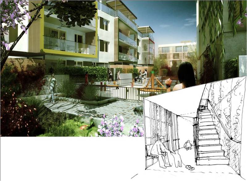 - Súkromné domy resp. byty dopĺňajú spoločné priestory a priestranstvá.