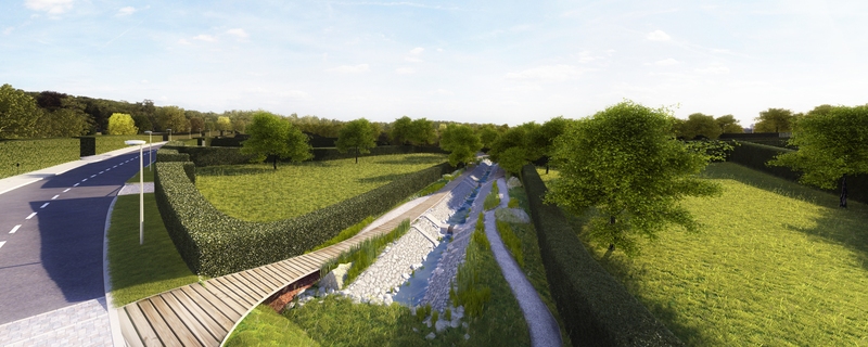 urbanistický koncept projektu Záhorské sady. Zvlnený zelený živý plot