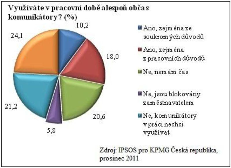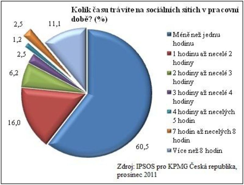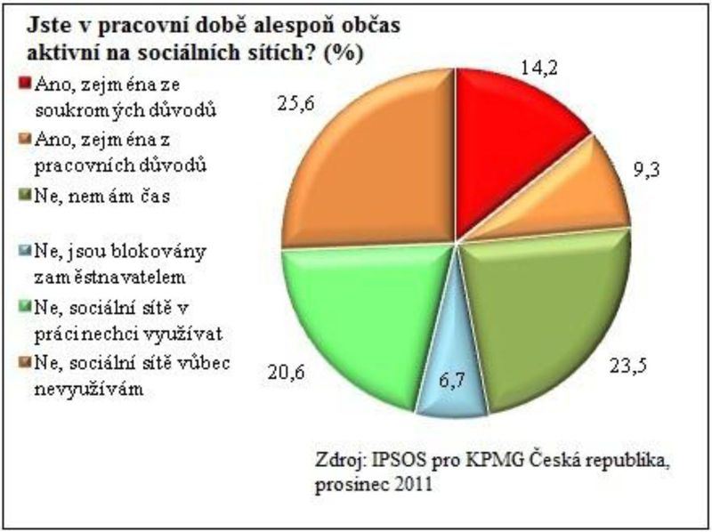 Z průzkumu, který pro KPMG Česká republika realizovala společnost Ipsos v prosinci 2011, vyplývá, že téměř čtvrtina zaměstnanců s možností přístupu k internetu je v pracovní době aktivní na sociálních sítích, přičemž 14 % z nich hlavně ze soukromých důvodů. Dalších 9 % pracuje se sociálními sítěmi především v rámci svého zaměstnání.