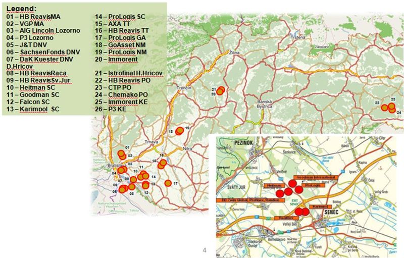 3 – Mapa logistických nehnuteľností na Slovensku (s legendou)