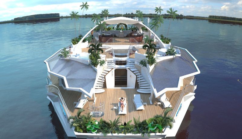 na ňom môže 12 ľudí a posádke a poskytuje tisíc štvorcových metrov