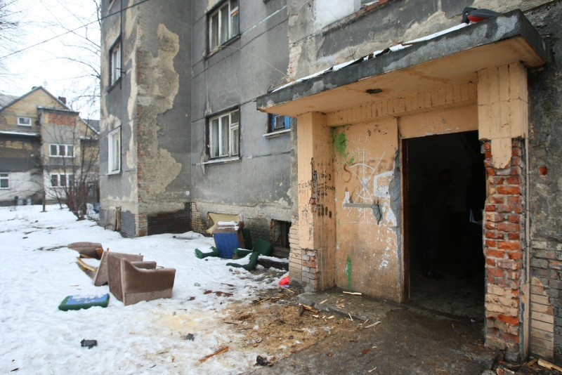 všudepřítomné odpadky nahradily opravené a plně funkční bytové domy