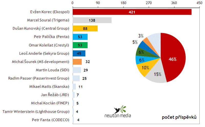 S jedinou výjimkou – i v té se na medailové pozici umístil Ekospol Evžena Korce. A bezkonkurenčně nejcitovanější osobností byl letos na české mediální scéně v rámci developerské branže právě Evžen Korec. Ten veřejnost prostřednictvím médií seznamoval s analýzami realitního trhu z dílny Ekospolu (např. s cenovou mapou Prahy), když figuroval také ve zprávách o startovacích bytech a projektech své firmy. E. Korec zároveň často vystupoval či mluvil i za celý obor. Například jménem developerských společností vyjádřil nelibost nad novelizací stavebního zákona, který má posílit vlastníky pozemků a účastníky povolovacích řízení – Korcovými slovy: „legalizovat vydírání ze strany účelových občanských sdružení“ (Deník 16. 6. 2012).