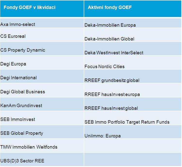 Významným faktorem realitních investic v Evropě (Česko nevyjímaje) jsou německé otevřené fondy (tzv. GOEF), které ke konci roku 2012 držely aktiva v celkové hodnotě 83 mld. eur. Právě segment GOEF ovšem právě nyní – jak upozorňuje společnost Colliers – prochází velkými změnami, v průběhu příštích pěti let se očekává likvidace řady těchto fondů.