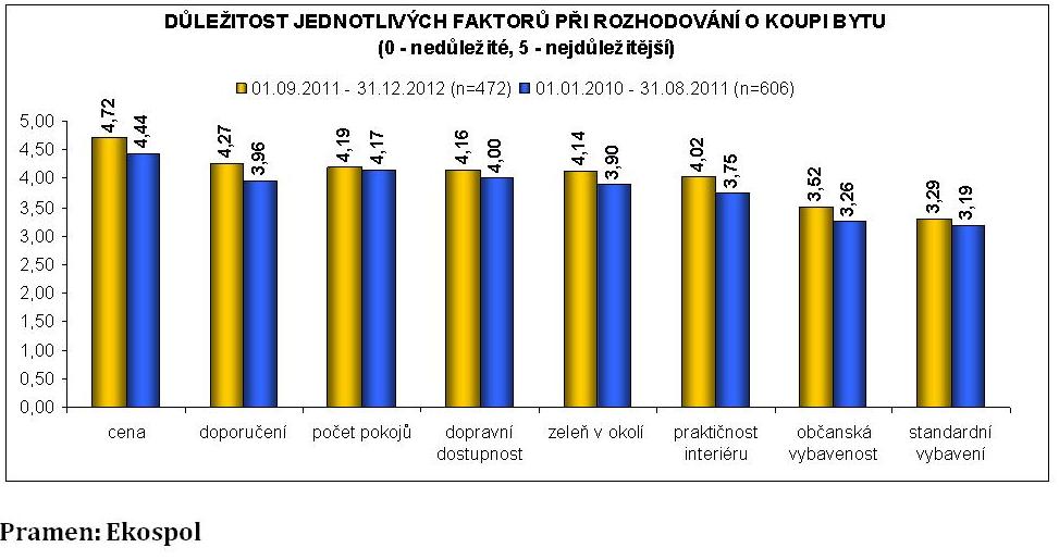 Letošní vývoj rezidenčního trhu bude zjevně záviset hlavně na cenové politice prodejců bytů nových i starších. Podle právě zveřejněné analýzy společnost Ekospol, která kontinuálně mapuje nálady svých klientů (celkem 1 078 respondentů), význam ceny jako faktoru výběru při koupi roste. „V nejlevnějším cenovém segmentu, kde se dnes prodává nejvíce bytů, je konečná cena bytu včetně DPH naprosto rozhodující,“ vysvětluje Evžen Korec, ředitel Ekospolu. Dodává ovšem, že zároveň rostou požadavky kupců na kvalitu, a to se týká jak samotných bytů, tak lokality včetně „zeleně“. Podle E. Korce také roste význam referencí – u Ekospolu doporučení konkrétního developera hraje roli u 75 % kupců. Co se účelu nákupu týká, statistika Ekospolu ukazuje, že dominují vlastní potřeby kupců, zatímco nákupy investiční, respektive „pro děti“, u tohoto developera představují jen 17, resp. 10 % celkového prodeje. Je vysoce pravděpodobné, že ve vyšších segmentech trhu budou investiční nákupy hrát větší roli, nicméně v porovnání s minulostí se do rezidencí v Česku investuje podstatně méně. „Doby masových investičních nákupů jsou už dávno za námi,“ konstatoval nedávno Jan Sadil, šéf Hypoteční banky.