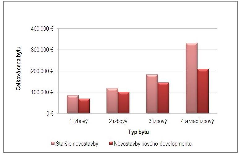 Graf 1– Porovnanie celkovej priemernej ceny bytu v Bratislave podľa typu bytu