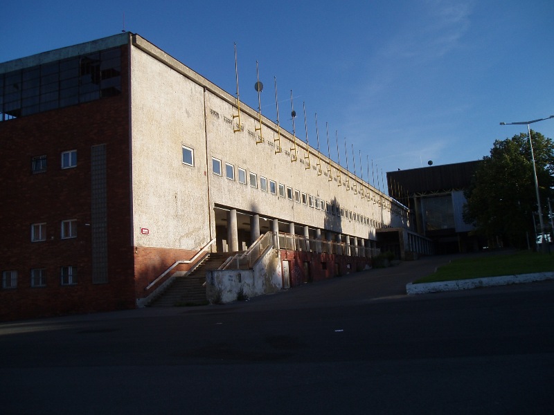 veřejný prostor bezradně kličkuje kolem mohutné hmoty stadionu.