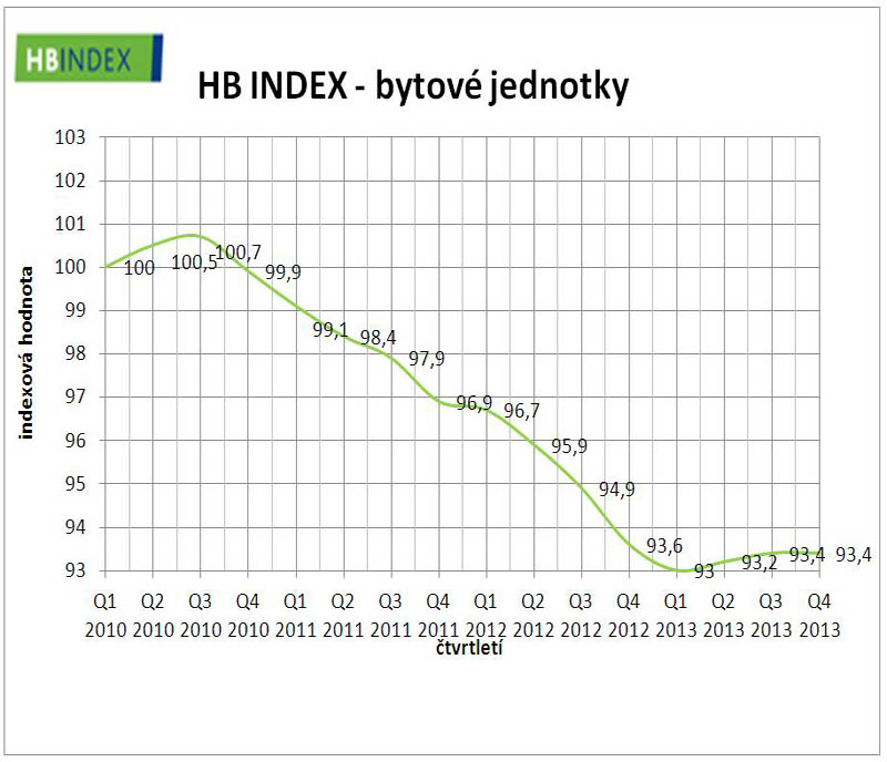 „HB INDEX u bytových jednotek zůstal na konci roku 2013 na stejné hodnotě jako ke konci třetího kvartálu, tedy na 93,4 bodu. Jeho růst se tak mezi čtvrtletími zastavil,“ říká Petr Němeček z Hypoteční banky. Podle něj tento vývoj potvrdil celoroční trend – ceny bytů jsou víceméně stabilní. Přitom v posledním čtvrtletí loňského roku i ceny bytů v Praze kopírovaly celostátní trend a stagnovaly. V mimopražských regionech ale byly jisté posuny patrné: mírného růstu bylo dosaženo v Jihomoravském kraji, výraznější pokles naopak zažily Ústecký a Liberecký kraj, když malé snížení cen bylo patrné i na Vysočině a ve Středočeském, Moravskoslezském a Zlínském kraji.