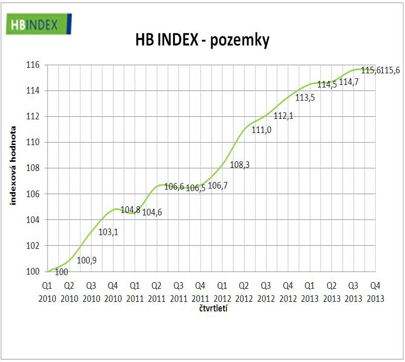 Vývoj Indexu cen nemovitostí Hypoteční banky (HB INDEX) v loňském posledním čtvrtletí zřetelně signalizoval stabilitu, a to dokonce i u cen pozemků, které v předchozím období měly zřetelné tendence k růstu. Jediným typem rezidenčních nemovitostí, který přece jen nějaký pohyb cen vykázal, byly rodinné domy. Jejich ceny vzrostly, ovšem jen o zanedbatelných 0,1 %, když za celý loňský rok narostly o 2 %. Ceny bytů přitom meziročně poklesly pouze o 0,2 %, když ceny pozemků už tradičně stoupaly a za minulý rok si připsaly zvýšení své tržní hodnoty o 2,1 %.