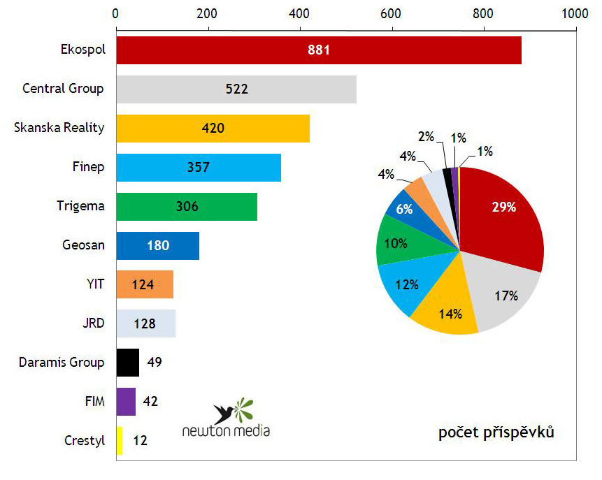 Největší pozornost českých médií mezi domácími developerskými společnostmi, které se zabývají rezidenční výstavbou, si v loňském roce vysloužil Ekospol. Podle průzkumu firmy Newton Média se o něm v roce 2013 v různých typech médií objevilo celkem 881 příspěvků. Tím Ekospol značně převýšil mediální „výskyt“ všech svých konkurentů – druhou příčku developerské hitparády obsadila společnost Central Group s 522 výstupy, v procentním vyjádření jich tedy oproti Ekospolu měla jen 60 %.