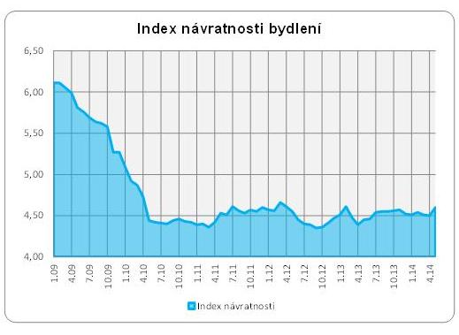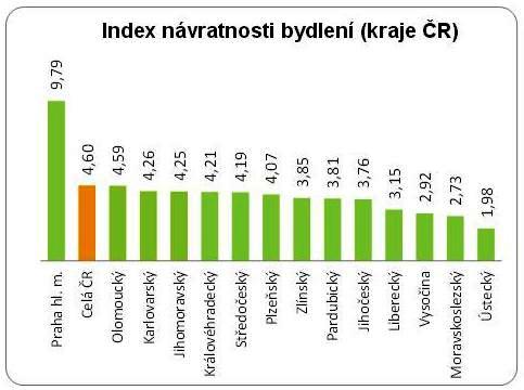 Kromě indexů dostupnosti bydlení společnost Golem publikuje také data indexu návratnosti bydlení – ten vyjadřuje, kolik násobků čistého ročního příjmu musí průměrná česká domácnost vynaložit na pořízení bytu v předem definovaném standardu. Hodnota tohoto indexu vzhledem k celkem razantnímu nárůstu cen bytů v květnu meziměsíčně vzrostl o celou desetinu procentního bodu. Průměrná česká domácnost tak dnes musí na pořízení bytu v ceně 1,76 mil. Kč (průměr ČR za všechny byty) vynaložit 4,6násobek ročního příjmu. Ovšem i tady dochází k velkým regionálním disproporcím. Zatímco v Praze hodnota indexu dosahuje bezmála 10 ročních příjmů, v Ústeckém kraji jsou to necelé dva. Průměrná cena bytů v tomto regionu totiž činí 0,61 mil. Kč.