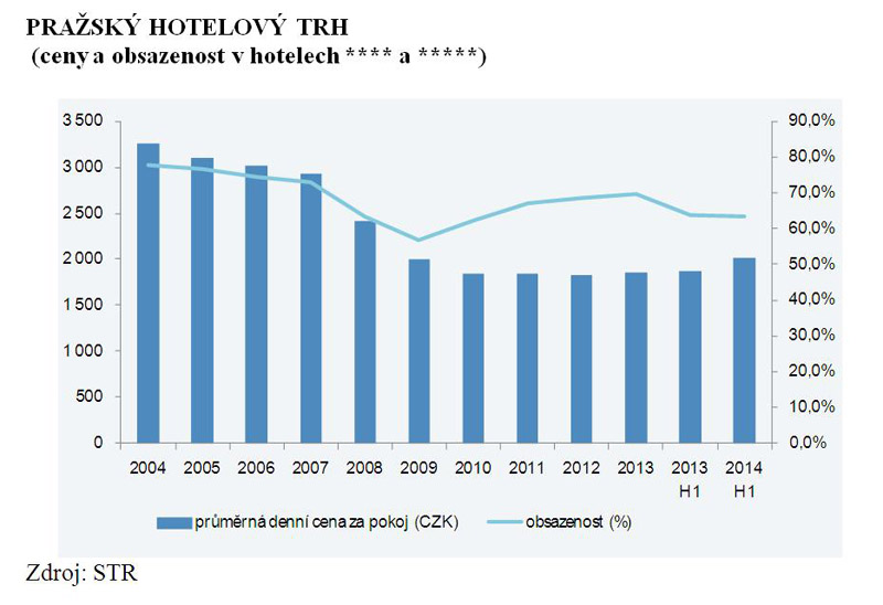 Obsazenost pokojů v prvním pololetí roku 2014 sice zůstala v porovnání se stejným obdobím roku 2013 relativně stabilní (meziroční pokles o 0,6 %), ale hoteliéři se konečně rozhoupali ke zvýšení cen. Průměrný účet v korunách za pokoj se tak v tomto období zvýšil o 7,2 %. Napětí ve východní Evropě, konkrétně ve vztazích mezi Ruskem a Ukrajinou však způsobilo pokles poptávky ze strany ruských klientů, a to nepříjemně ovlivňuje míru obsazenosti pokojů. Ani tento negativní faktor by nicméně pro sektor neměl představovat nějaký fatální problém. „Co se týče hotelového trhu, pro příštích dvanáct až osmnáct měsíců jsme optimisté. Zotavování ekonomiky kladně a bezprostředně ovlivňuje cestovní ruch, jelikož přibývá služebních i turistických cest. Dnes je rozestavěno jen několik hotelů – a to taky přispívá k zotavení trhu. České hotely navíc pro cizince zlevnila devalvace české koruny, ke které došlo počátkem roku,“ prognózuje Frédéric Le Fichoux.