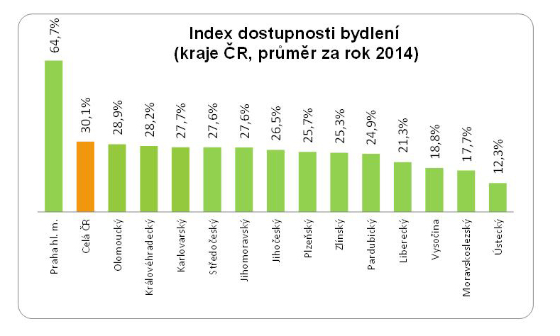 Levnější hypotéky a vstřícnost bank znamenají lepší dosažitelnost úvěrového financování a přeneseně také snadnější přístup bydlení. Podle indexu dostupnosti bydlení (vyjadřuje, jak velkou část čistého příjmu průměrné české domácnosti si ukrojí splátka hypotéky, jejíž výše odpovídá průměrné ceně bytu) stojí českou populaci bydlení (resp. náklady na jeho pořízení) podstatně méně než v minulosti. Souhrnný index dostupnosti bydlení zahrnující celou ČR a všechny velikosti bytů v prosinci 2014 klesl na 30 %, když v součtu za celý rok 2014 a dosáhl hodnoty 30,1 %, zatímco v roce 2010 to bylo 36 % a o rok dříve dokonce 48 %. Při hodnocení těchto čísel je ovšem mít na zřeteli takřka propastné regionální rozdíly: v Praze jsou byty enormně drahé (index činí takřka 65 %), na severu Moravy a Ústecku zase téměř neuvěřitelně levné (18 a 12 %).