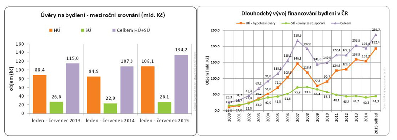 Z rostoucí poptávky po hypotékách těží i stavební spořitelny, které v posledních letech rozhodně neprožívaly své nejlepší časy. V červenci objem jimi sjednaných úvěrů v červenci dosáhl hodnoty 4,419 mld. Kč, což je o 22 % více než loni. Meziroční růst vykazují všichni účastníci trhu, přičemž největší přírůstek zaznamenala Wüstenrot stavební spořitelna, kde však výrazné navýšení produkce vyplývá z nízké srovnávací základny 2014. Vedle WSS o desítky procent stoupla také produkce Modré pyramidy (+72 %) a Stavební spořitelny České spořitelny (+38 %). O 13 % roste Raiffeisen stavební spořitelna a dominantní postavení, i přes pomalejší růst, si udržuje ČMSS.