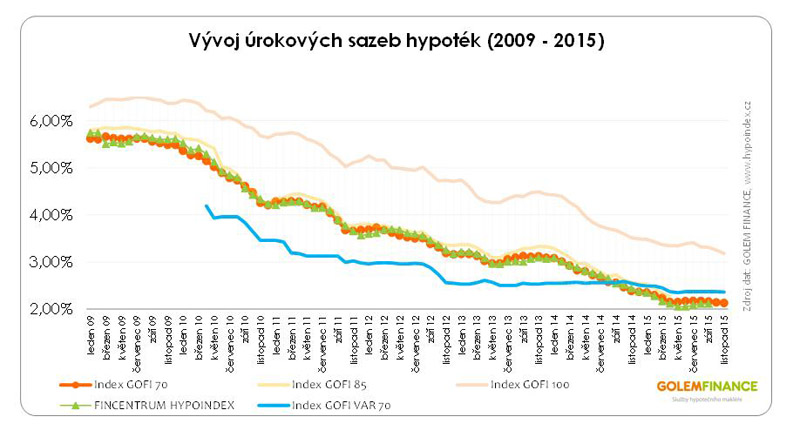 „Banky zažívají velmi příznivý závěr roku, velcí hráči těží z extrémní poptávky a i přes zlevňování peněž nemusí snižovat své úrokové sazby, neboť mají dost hypoték rozpracovaných, a to až do konce letošního roku. Do příštího roku vstoupíme s velmi nízkou úrovní úrokových sazeb a je předpoklad, že míra úrokových sazeb v roce 2016 bude nejnižší v historii,“ říká Libor Ostatek, ředitel společnosti GOLEM Finance, specializované na financování bydlení. Trochu paradoxně se přes tento – pro klienty příznivý – vývoj na hypotečním trhu u nás bydlení zdražuje.