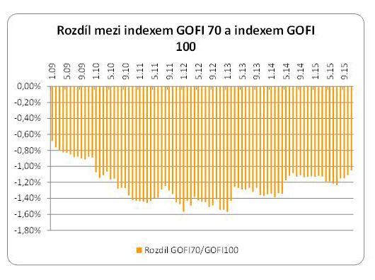 Před lety skoro okřídlené tvrzení bankéřů „Není kam klesat!“ už drahnou dobu nikdo neopakuje. Zdá se, že úrok dnes nezná žádné dno: hypotéky i v listopadu opět zlevnily. Hlavní podíl na poklesu indexů měly nabídky menších hráčů jako Oberbank či Sberbank, ale zlevňovala například i UniCreditbank. Navíc peníze, z kterých banky financují půjčky klientům, byly na konci měsíce nejlevnější v historii, byť jen na krátký čas (Evropská centrální banka v rozporu s očekáváním zpřísnila svou politiku, takže cena peněz mírně vzrostla). Každopádně index GOFI70 na vývoj reagoval mírným poklesem, když oproti loňskému roku byla průměrná úroková sazba 70% hypoték nižší o 1/4 procentního bodu (11/2015: 2,38 %). Vzhledem k dlouhotrvajícímu poklesu sazeb již nejsou tyto meziroční změny tak velké jako v minulosti. Ovšem pokud porovnáme stávající situaci s listopadem 2010, kdy si úroky sjednávali klienti, kterým nyní končí pětileté fixace, jsou nyní sazby na polovině a nová měsíční splátka může být o tisícikoruny nižší.