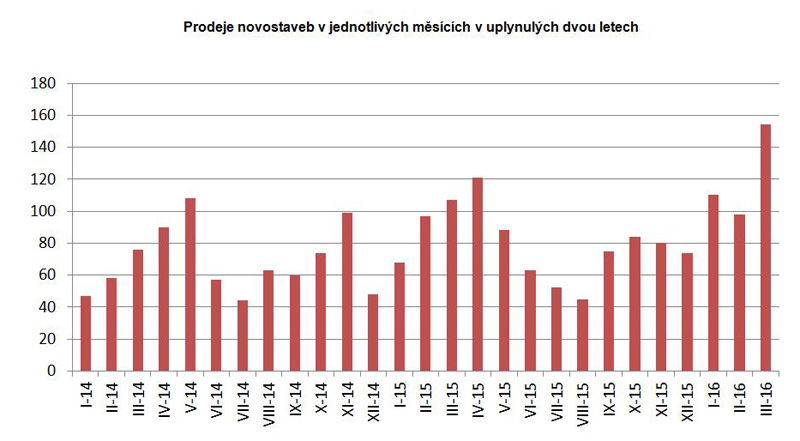 Prodeje novostaveb v jednotlivých měsících v uplynulých dvou letech