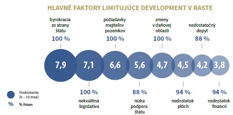 Hlavným nepriateľom developerských spoločností sú, podľa výsledkov najnovšieho výskumu, úrady a byrokracia. Riaditelia všetkých firiem označili za hlavný faktor, ktorý limituje ich firmu v raste, byrokraciu zo strany štátu (požiadavky kladené na developerov, dlhé lehoty pre rozhodovanie, atď.). Na stupnici od nuly do desať, kde desať maximálne limituje firmy v raste, ohodnotili problém byrokracie číslom 7,9. Iba s miernym odstupom si posťažovali na nekvalitnú legislatívu a jej časté zmeny (7,1 bodov z maximálnych 10, potvrdzuje 100 percent riaditeľov). Spoločnostiam sa tiež nepáčia požiadavky majiteľov pozemkov (6,6 bodov z maximálnych 10, opäť potvrdzuje 100 percent riaditeľov). Za najmenší problém považujú poprední predstavitelia developerského trhu nedostatok financií a nedostatočný dopyt. „Myslím, že všetci developeri sa zhodnú v tom, že spolupráca s úradmi nie je na požadovanej úrovni. Napriek tomu, že orgánom územného plánovania je obec či mesto, tento nástroj využívajú obce stále nedostatočne, a podľa môjho názoru, aj neodborne. Žiadny investor nemá záruku, čo bude môcť na pozemku postaviť, aké budú urbanistické požiadavky, jednotlivé parametre si obce často vysvetľujú v rozpore so stavebným zákonom a z toho potom vzniká tlak na úradníkov a vytvára sa priestor pre korupciu. Kvalitné územné plány považujem za jeden z najdôležitejších nástrojov v rukách miest a obcí, ale podľa mňa chýba politická vôľa na ich obstarávanie,“ popisuje situáciu Oľga Petková, riaditeľka, FINEP SK a. s.