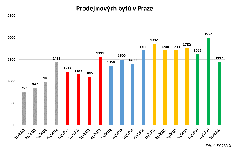 Prodej nových bytů v metropoli si v letních měsících vybral tradiční pauzu a po předchozím rekordním čtvrtletí se ve čtvrtletí třetím výrazně propadl. Developeři v Praze od července do konce září podle statistických šetření společnosti Ekospol prodali 1 447 nových bytů, což je nejméně za poslední dva roky. Současně se také výrazně omezila nabídka nových bytů.
