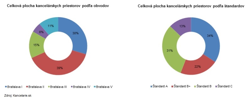 Celková plocha kancelárskych plôch v Bratislave bola na konci druhého štvrťroku 1 631 000 m2. Najväčší podiel na ponuke má Bratislava II s 39 %.