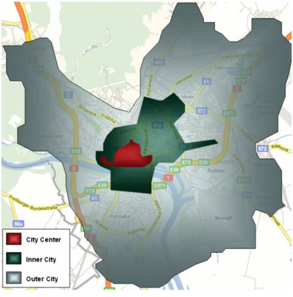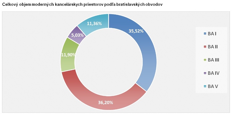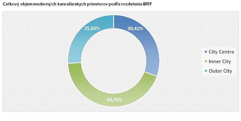 Trh kancelárskych priestorov v Bratislave rozdeľuje Bratislava Research Forum (BRF) na nasledujúce časti: centrum mesta, vnútorná a okrajová časť Bratislavy. Dáta uvádzané nižšie sú rozdeľované aj podľa okresov Bratislavy.
